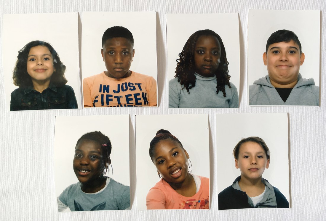 Aminata que se incorporó la semana pasada, ha llegado un poco tarde a clase, por eso no sale en la foto de grupo anterior, pero no importa, en Distrito 5, volvemos al photomatón, y ¡todos los niños se llevan una foto a casa!